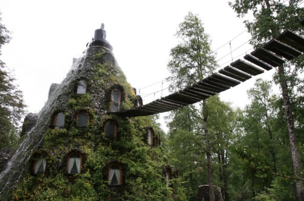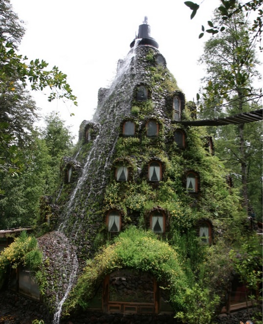 Go back to nature is the word today and what better way there is to do that if you’re living under a waterfall. The Montana Magica Lodge Hotel located at Huilo Huilo nature reserve in Chile offers one such experience. The hotel is designed in a shape of volcanic mountain with comfortable rooms inside. Clean, fresh water erupts instead of lava from top and flows over the windows of the hotel.