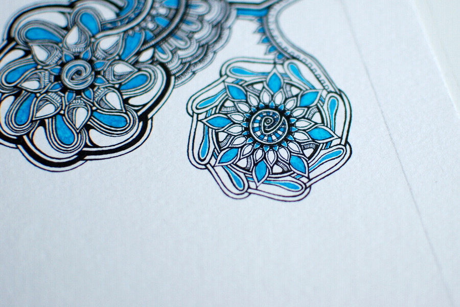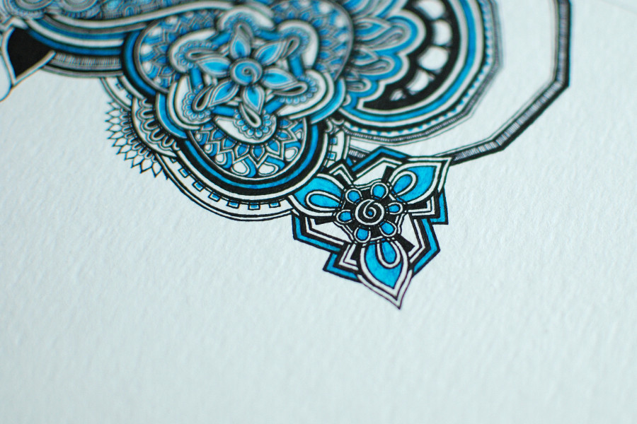 Estonian artist Sandra, also known as mikiverevikim on Twitter, recently unveiled her newest artwork – a painstakingly and beautifully intricate floral pattern drawn with black and blue gel ink pens onto rough watercolour paper. She humbly calls herself ”a slow drawer” because she spent around 40 hours drawing this 18 x 27 cm piece of art and around 50 hours tracing it on Adobe Illustrator after she scanned it. The floral pattern consists of many shapes and spirals superimposed onto each other.